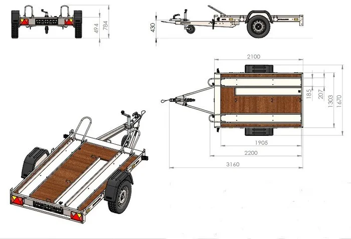 Dimensions de la remorque entière :