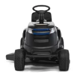 Un tracteur de jardin électrique à éjection latérale de 48 V alimenté par batterie Li-ion et offrant une largeur de coupe de 98 cm. Idéal pour des parcelles de l’ordre de 3500 m².