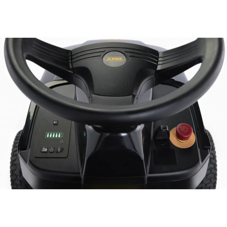 Le siège Alpina Smart et le volant Alpina Ergonomic garantissent à l’utilisateur le plus grand confort de conduite, tandis que l’enclenchement électromagnétique assure la mise en marche et l’arrêt des lames en appuyant sur un simple bouton.