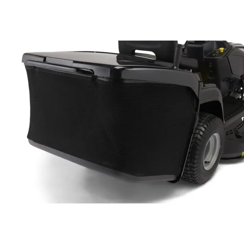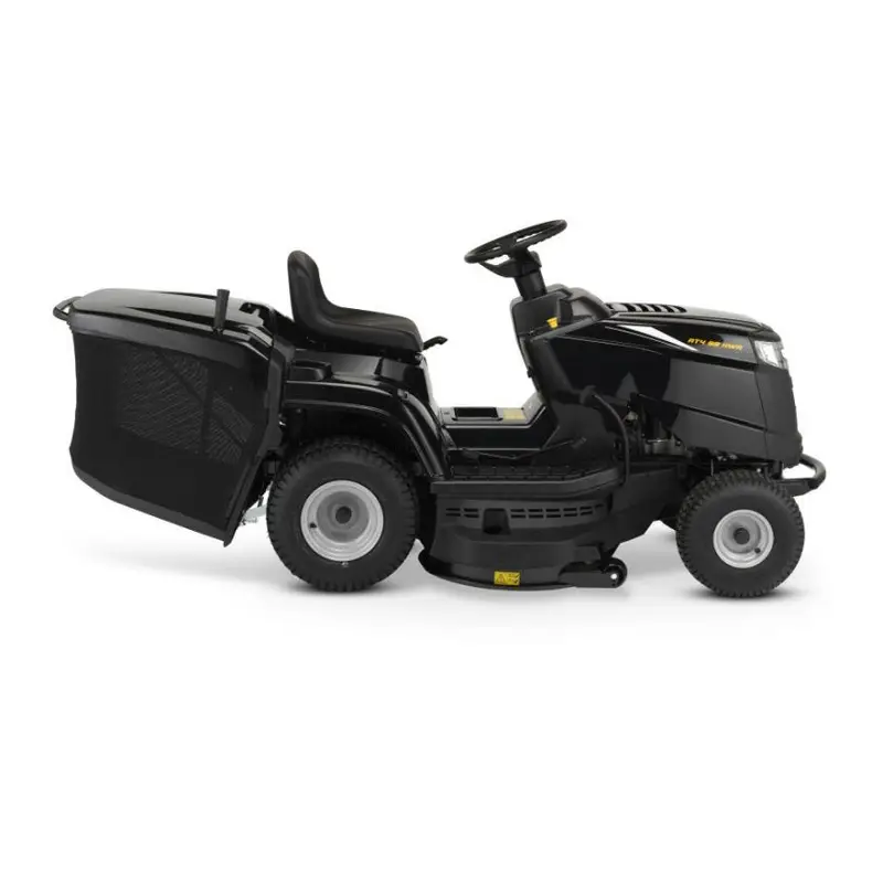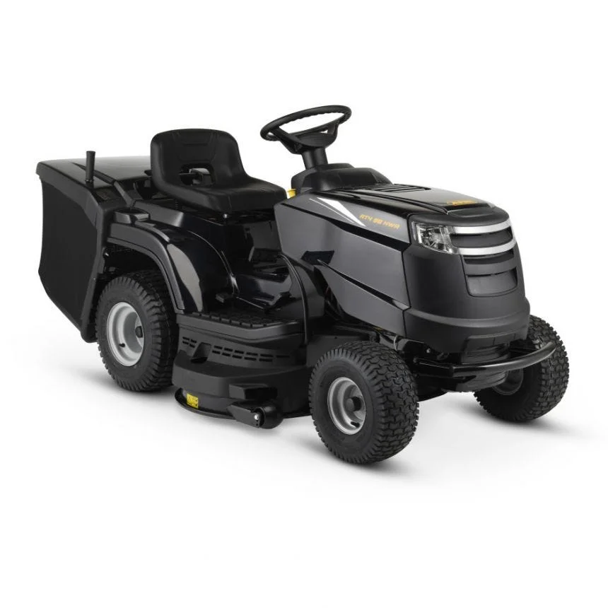 Un tracteur à gazon bicylindre puissant avec un moteur STIGA de 586 cm³, un carter de coupe à double lame de 98 cm et une transmission hydrostatique à pédale. Kit mulching et attelage de remorquage disponibles en option.